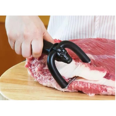 QWICK TRIM PROFESSIONAL MEAT TRIMMERUntuk hasil terbaik, dinginkan daging terlebih dahulu di lemari es sebelum digunakan sekitar 38-42 derajat.Pegang daging dengan satu tangan dan potong dengan tangan lainnya dengan pisau sejajar dengan permukaan pemotongan.Serut panjang untuk memotong lemak.Cocok untuk mengangkat lapisan kulit perak.Materials:Handle: PolypropyleneBlade: Stainless
