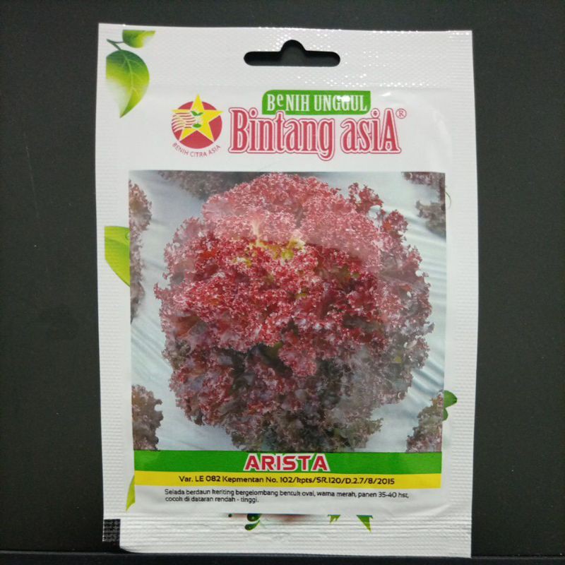 Selada merah arista berzaun keriting bergelombang, bentuk oval warna merah panen 35-40 hst cocok di dataran rendah - tinggiisi 1