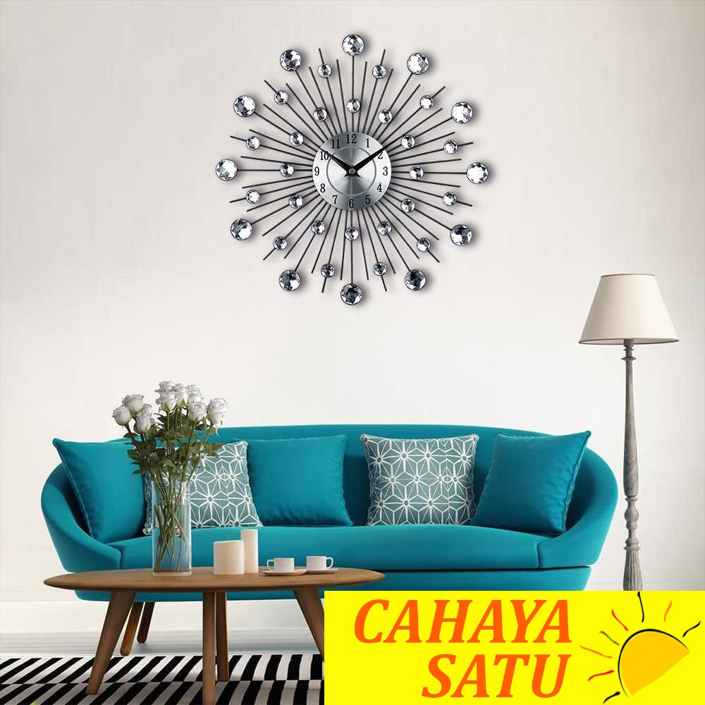 Jam dinding akan menambah kesan kemewahan pada dekorasi ruang tamu Anda. Ini berkat hadirnya model diamond yang dibalut warna silver metalic yang membuat ruang makin terlihat premium. Material utamanya sendiri ialah metal atau logam.FeaturesUnique DesignPercantik ruang makan Anda dengan dekorasi jam dinding unik ini. Cocok juga digunakan untuk menghias ruang tidur, ruang tamu, cafe dan lainnyaAA BatteryGiant wall clock ditenagai hanya dengan baterai AA saja, seperti jam dinding pada umumnya.Metal MaterialSebagian besar material jam dinding 3D ini terbuat dari bahan metal atau logam sehingga akan membuatnya terlihat lebih elegan. Terlebih, bagian metalnya sendiri sudah dicat silver metalic.Package ContentsBarang-barang yang anda dapat dalam kotak produk:1 x Jam Dinding Spesifikasi Jam Dinding 3D Quartz Creative Design Model Luxury Diamond - T6807Tipe BateraiAA (1.5V) battery (Not include)MaterialMetalic&AcrylicDimensidiameter jam: