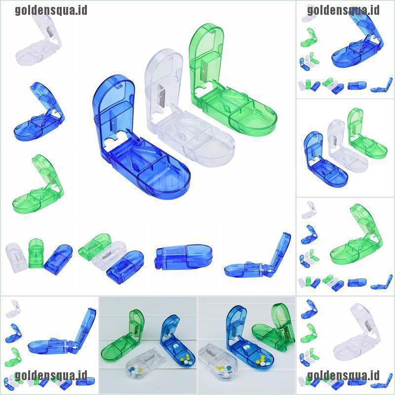 Pusat Grosir Perlengkapan di Kabupaten Batanghari 【goldensqua*cod】fashion Pill Cutter Splitter Half Storage Compartment Box Medi dari 0 Luar Negeri