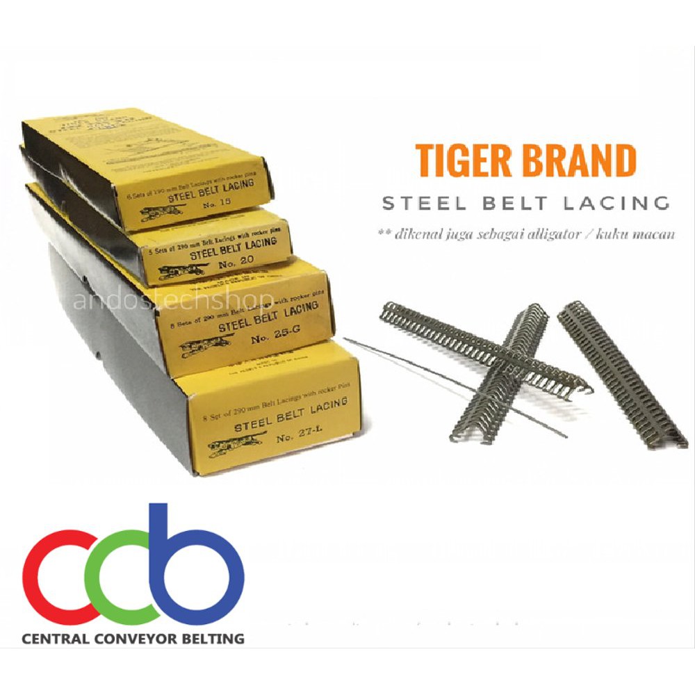 Penyambung conveyor atau aligator kuku macanuntuk penyambungan conveyor dengan ketebalan 5-6Mmdengan pemasangan mudah. tanpa alat cukup dengan mengunakan palu atau martil anda sudah dapat memasang alligator kuku macan merk TIGERharga di atas adalah harga perboxNote :Central Conveyor beltingkami menyediakan berbagai kebutuhan conveyor belts,acsesories,alat industri dan tools,untuk informasi lebih lanjut hubungi ka