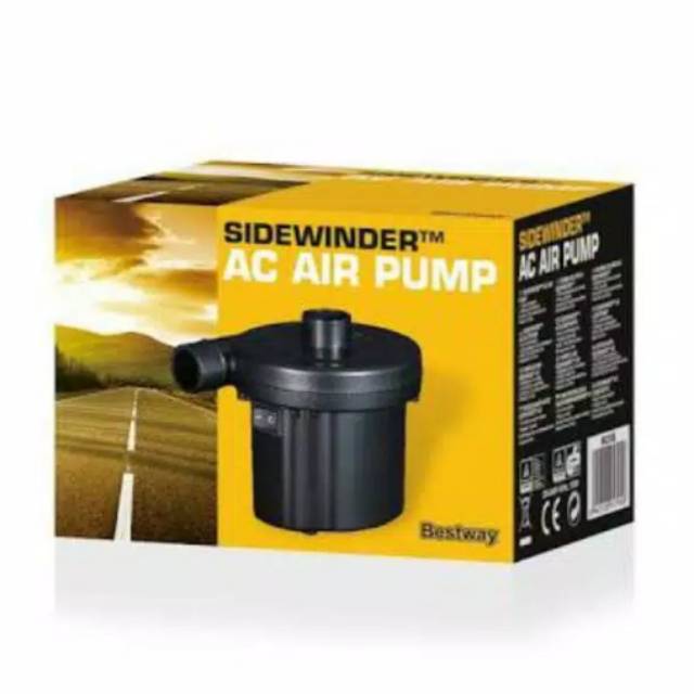 Barang segel pabrik. Gak bisa retur kalau ada kerusakan. Krn brg gak pernah di buka. Asli pabrik..Spesifikasi lainnya :Bestway 62056 Sidewinder AC Air Pump / Pompa Angin Elektrik1. Berat : 700 gram2. Material : ABS polymer3. Kapasitas tekanan angin : 350mmH2O4. Konsumsi listrik : AC 220x240 - 50Hz - 120W5. Volume udara : 2x1500cc- Pompa ini didesain dengan bentuk ergonomis sehingga mudah untuk memompa kolam, sofa, kasur, perahu, dll.- Dilengkapi dengan 3 katup adaptor yang berbeda ukuran sesuai dengan lubang pada kolam/sofa/kasur/perahu, dan produk inflatable lainnya- Hemat waktu & energi- Kecil, ringan, & kompak sehingga mudah dibawa ke mana-mana- Dapat digunakan untuk memompa & mengempiskan a