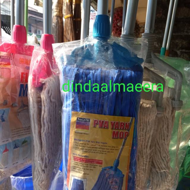 PVA yarn mop.. NAGATADaya serap air no 1 sangat kuat diantara mop lain*PVA yarn mop dijahit perhelai sehingga lebih tahan lamaCocok untuk mengepel lantai yang basah dan bisa berfungsi sebagai penyerap tumpahan air..Gagang alumunium pajang.. NAGATA. Produk keluarga masa kin