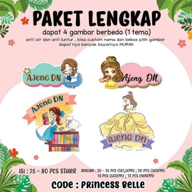 STIKER NAMA Isi 75-80pcs Dapat 4 gambar dan 4 ukuran yg berbeda Anti Air (Waterproof)✨ Anti Minyak jugaBahan Stiker Glossy (Vynil)High Quality Laser PrintingKUALITAS SUPER BAGUS PUNYA YA Sangat mudah di tempel di mana saja ya, misalnya : botol minum, kotak bekal makan, termos, buku, pulpen, charger, botol kosmetik dll ya (Tidak Mudah Sobek).- Full Colour- 1 Paket terdiri dari 4 ukuran yaitu : 30-35pcs (3x1,5cm) ; 20pcs (3x3cm) ; 15pcs (5x2cm) ; 12pcs (4x4cm)- Desain stiker tidak pasaran, lucu-lucu ya- Stiker telah dipotong sesuai bentuk dan ukuranCUSTOM NAMA WAJIB DI ISI : - TULISKAN NAMA YG AKAN DI INPUT DI KOLOM NOTE SAAT CHECKOUT / CHAT KAMI- NAMA ANAK HANYA BISA DI INPUT 1 BARIS YA#katalogmarshistikernama #stikernama #labelnama #stiker #sticker #stikeranak #stikerlucu #tempelannama #tempelanlucu #label #labelstiker #waterproofsticker #waterprooflabel #labelnamaanak #stikernamaanak #labelbotol #stikerbotol #stikersekolah #labelsekolah #labelnamamurah #stikernamamurah #stikermurah #labelmurah #labelnamalucu #labelnamaunik #stikerunik #labelunik #stikerlucu #labellucu #stikernamacustom #stikercustom #stikerkekinian #labelkekinian #aksesorisanak #kebutuhananak #kebutuhananaksekolah #bekalsekolah #souveniranak #souvenirulangtahun #hampers #hampersjakarta #hampersanak #hampersmurah #stikerserbaguna #serbaguna #customsticker #stikerkartun #designstic