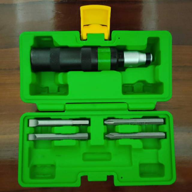 Obeng Ketok / Impact Driver Set ( kotak Box plastik )BRAND : TEKIROMADE IN JAPANContents:- 1pc Impact Driver- 4pcs Bits 8x80mm:(+) PH2, PH3( - ) 8mm,