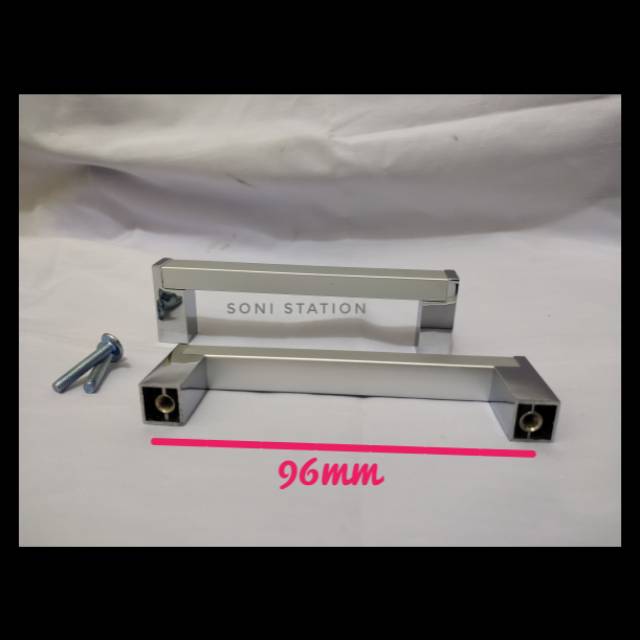 handle merk huben dengan kode TA-16 terbuat dari bahan aluminium dengan warna anodize dan pinggir kanan kiri silver chrome. cocok untuk laci dan lemari model minimalis.Bahan = aluminiumUkuran = 96mmHarga per pcs sudah termasuk baut / skrup h